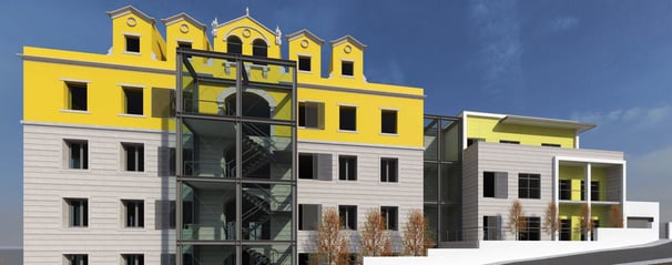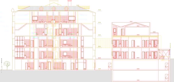 Proposta de reabilitação de um edifício de habitação com sete pisos, dois em cave para estacionamento e cinco para habitação, e ampliação com um novo edifício de quatro pisos. No total são 15 apartamentos com tipologias compreendidas entre T1 e T4, sendo quatro dos apartamentos T3 em duplex, no edifício reabilitado.